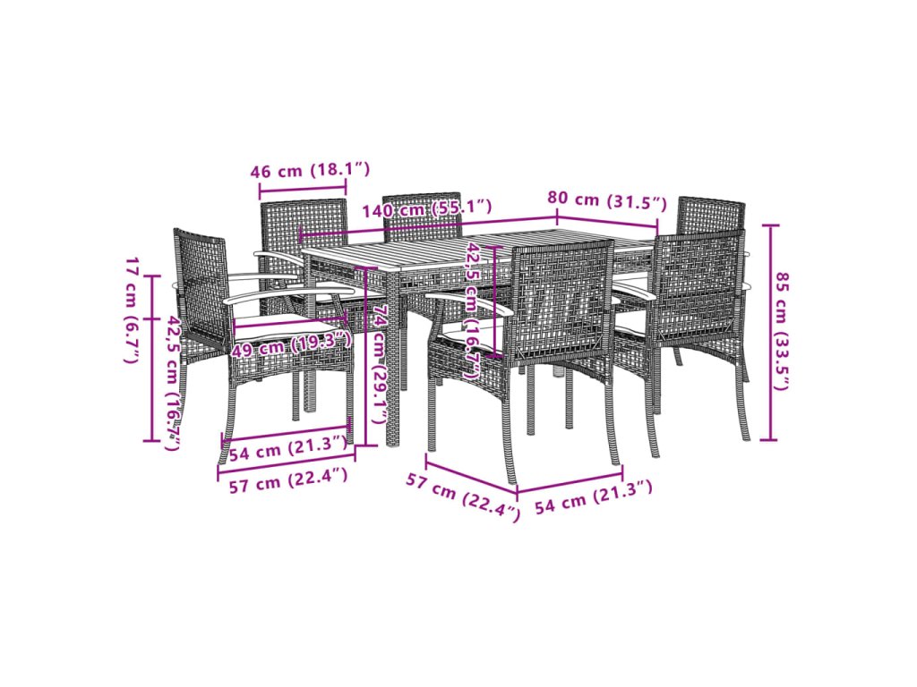 7dílný zahradní jídelní set s poduškami šedý polyratan 3213572
