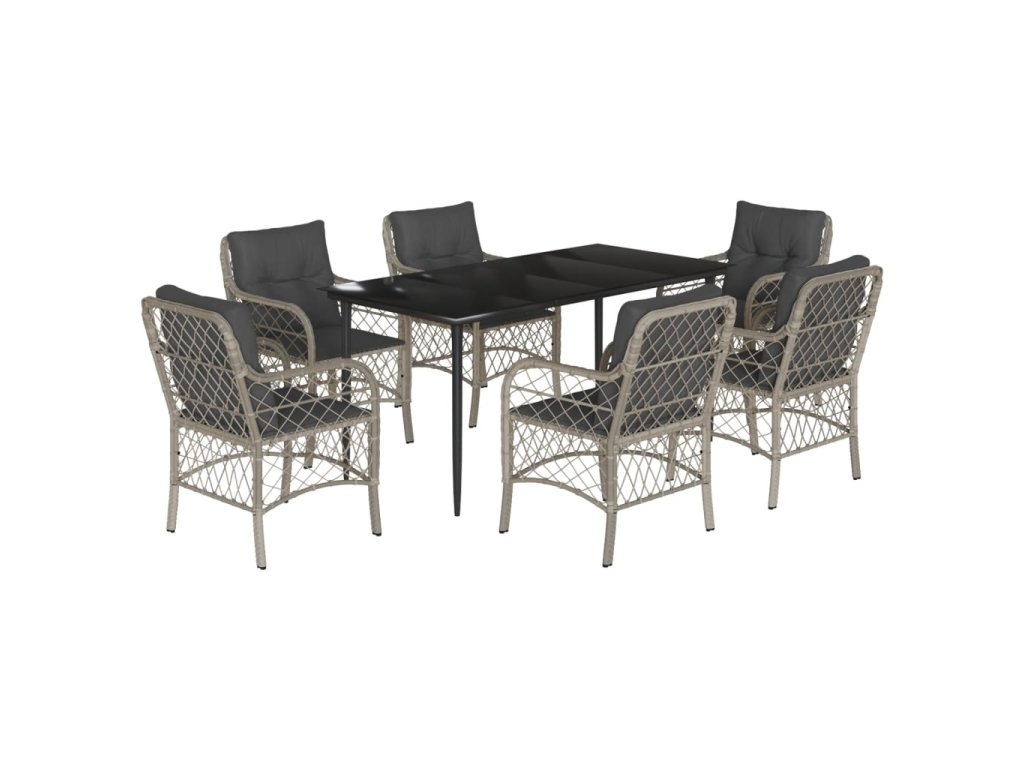7dílný zahradní jídelní set s poduškami světle šedý polyratan 3212170