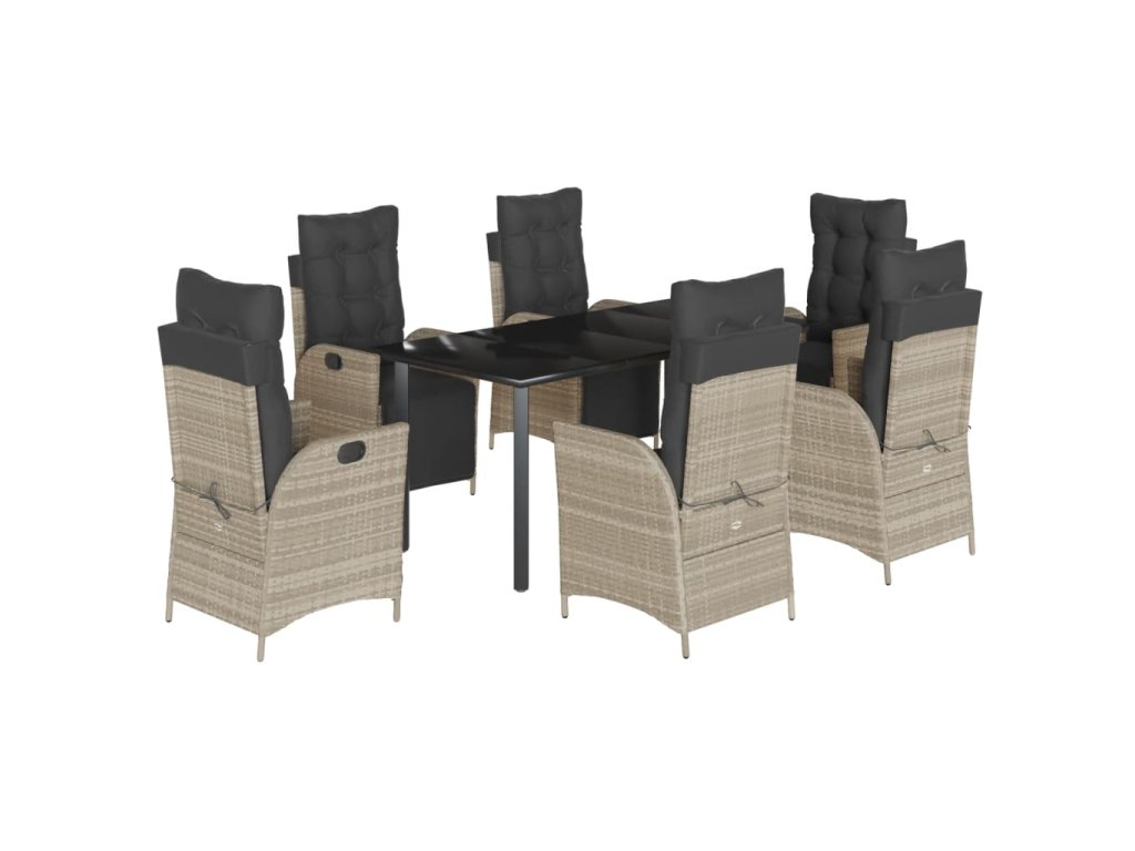 7dílný zahradní jídelní set s poduškami světle šedý polyratan 3213473