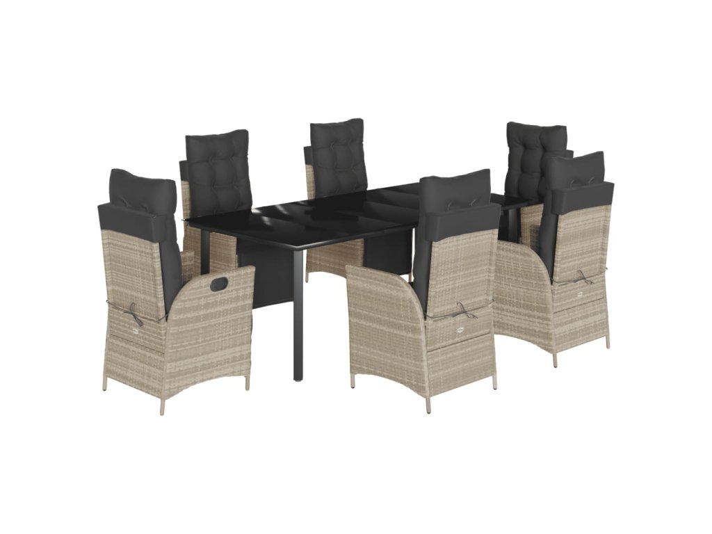 7dílný zahradní jídelní set s poduškami světle šedý polyratan 3213474