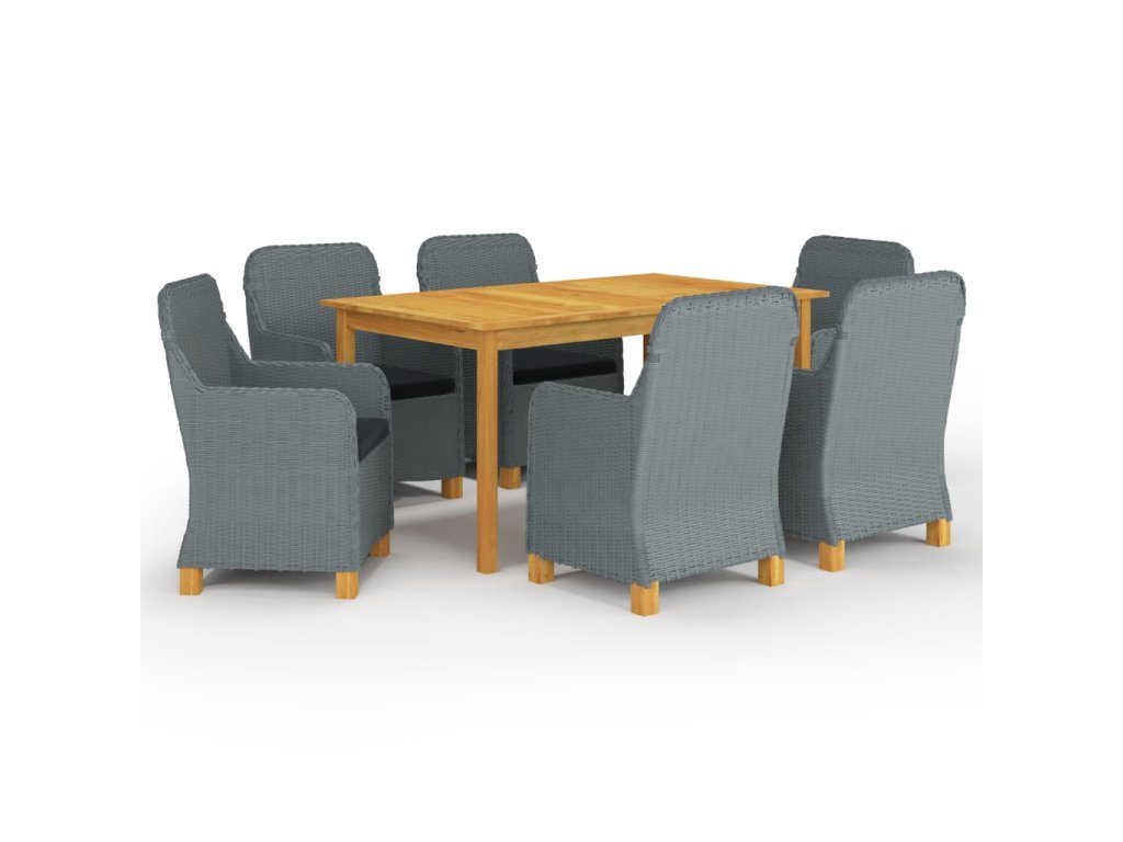 Jídelní stůl je zhotovený z masivního akáciového dřeva s olejovaným povrchem, takže je stabilní, odolný a nenáročný na údržbu. Zahradní židle mají rám z práškově lakované oceli, opletený kulatým PE ratanem, který výborně vzdoruje klimatickým vlivům. Dlouho vám proto vydrží a snadno je očistíte. Hustě polstrované podušky vám při odpočinku zaručí mimořádný komfort. Jejich potahy jsou opatřené zipem, abyste je mohli bez námahy stáhnout a oprat. Nohy z masivního akáciového dřeva přispívají k lepší stabilitě a delší životnosti. Vzhledem k jejich lehké konstrukci lze jídelní židle jednoduše přesouvat, kam potřebujete.
