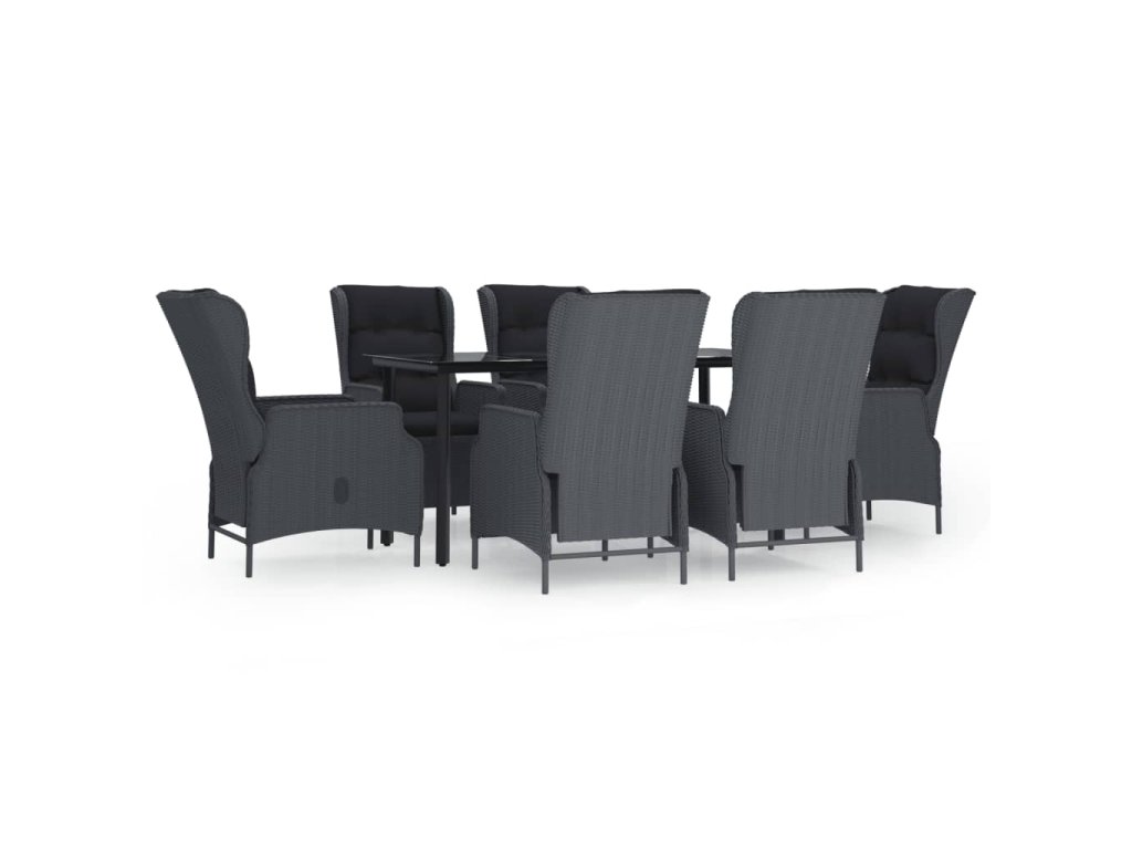 7dílný zahradní jídelní set tmavě šedý polyratan 3156791