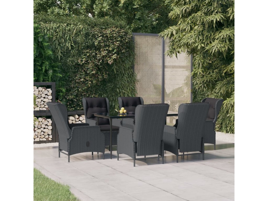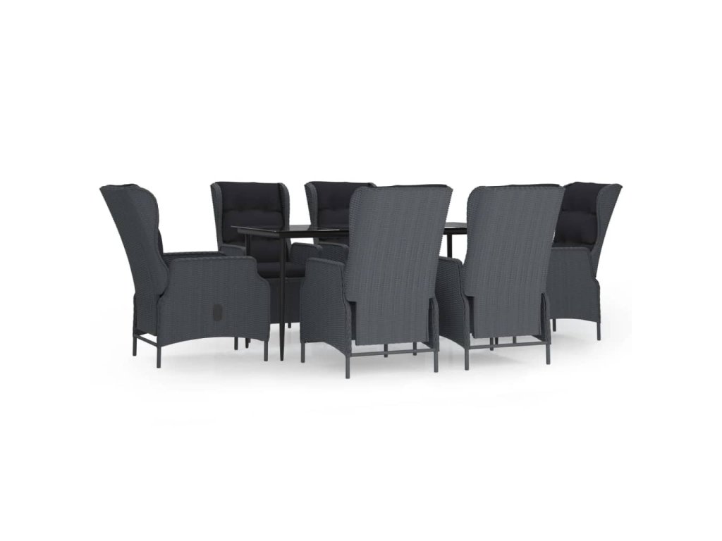 7dílný zahradní jídelní set tmavě šedý polyratan 3156803