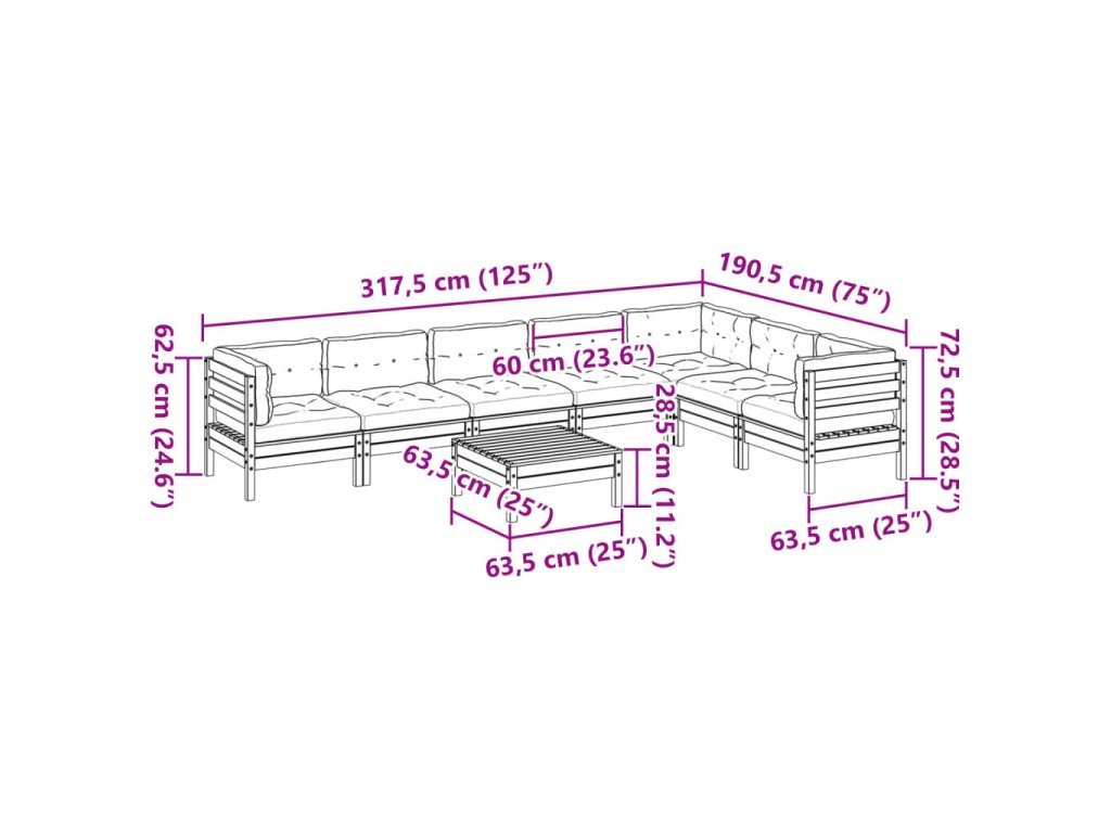 8dílná zahradní sedací souprava a podušky impregnovaná borovice 3299484