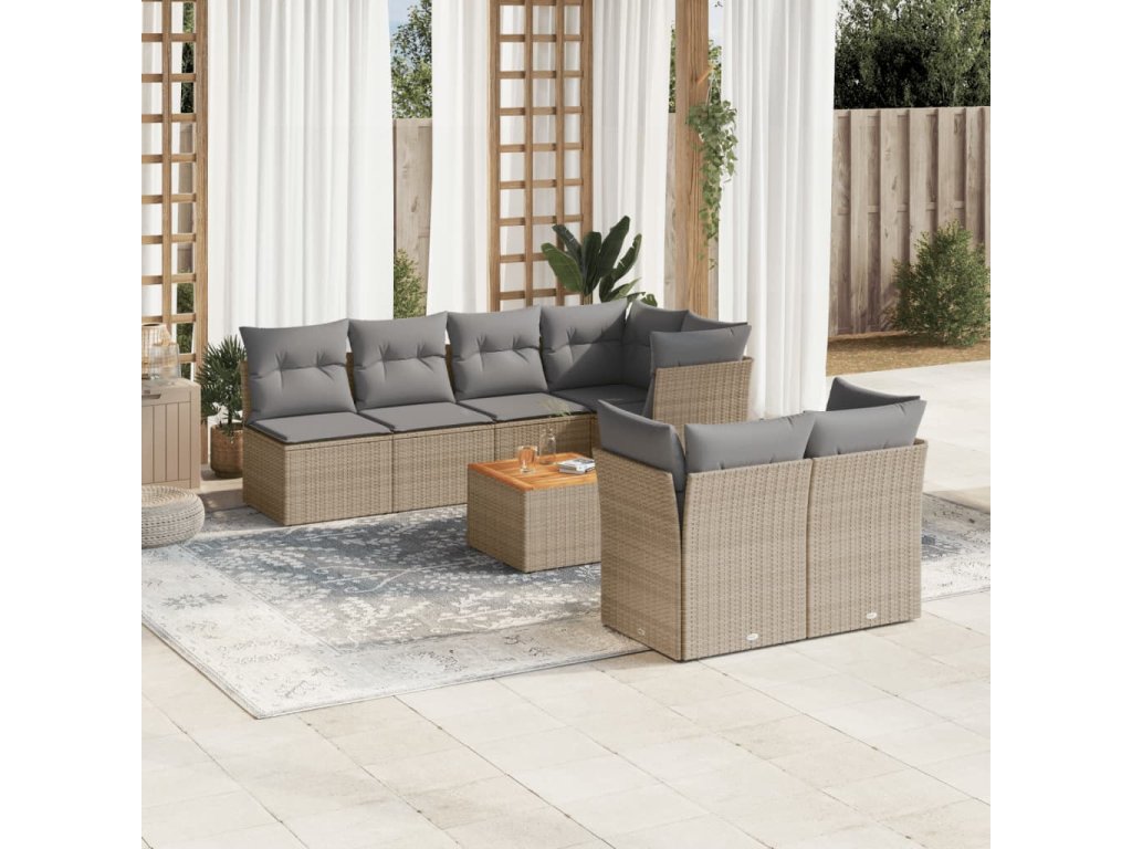 8dílná zahradní sedací souprava a podušky mix béžové polyratan 3255849