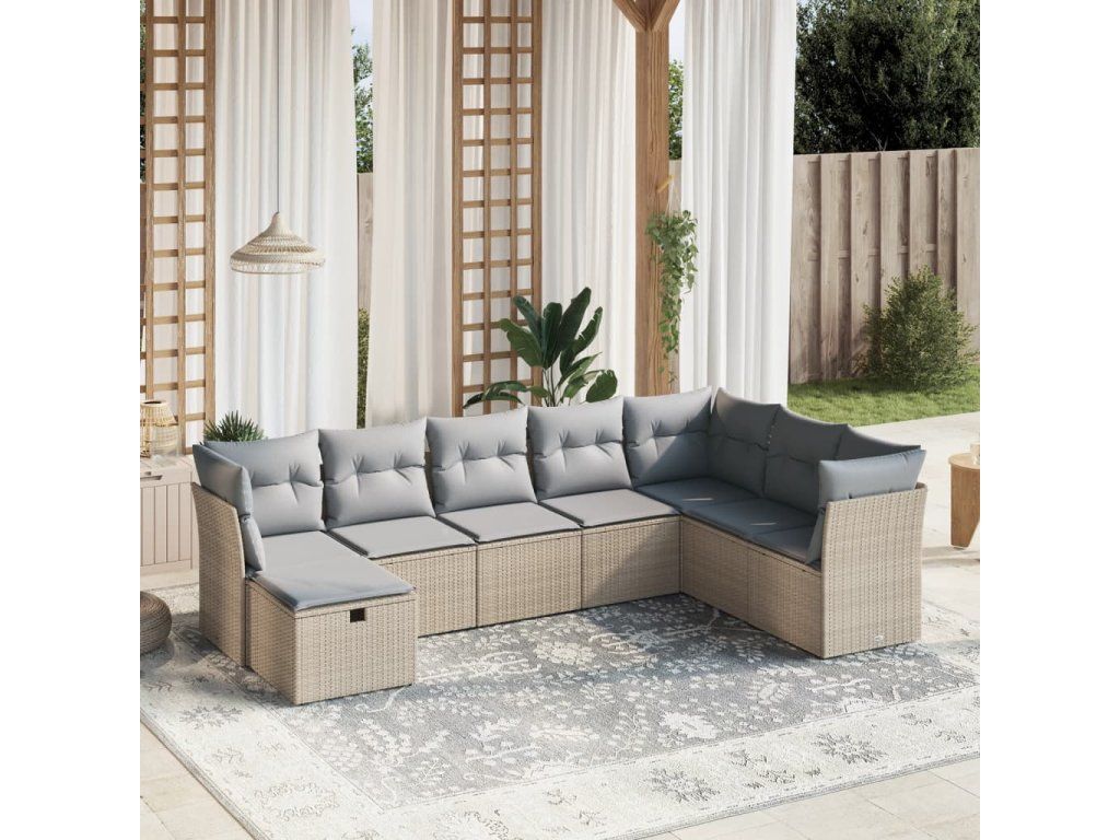 8dílná zahradní sedací souprava a podušky mix béžové polyratan 3263275