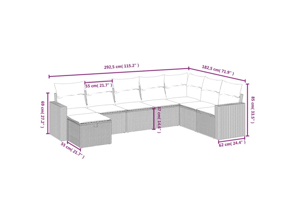 Tato zahradní sedací souprava je dokonalým doplňkem vaší zahrady, terasy nebo dvorku a poskytne vám pohodlné a příjemné místo, kde si můžete povídat s rodinou a přáteli nebo jen tak odpočívat a užívat si pobyt venku.