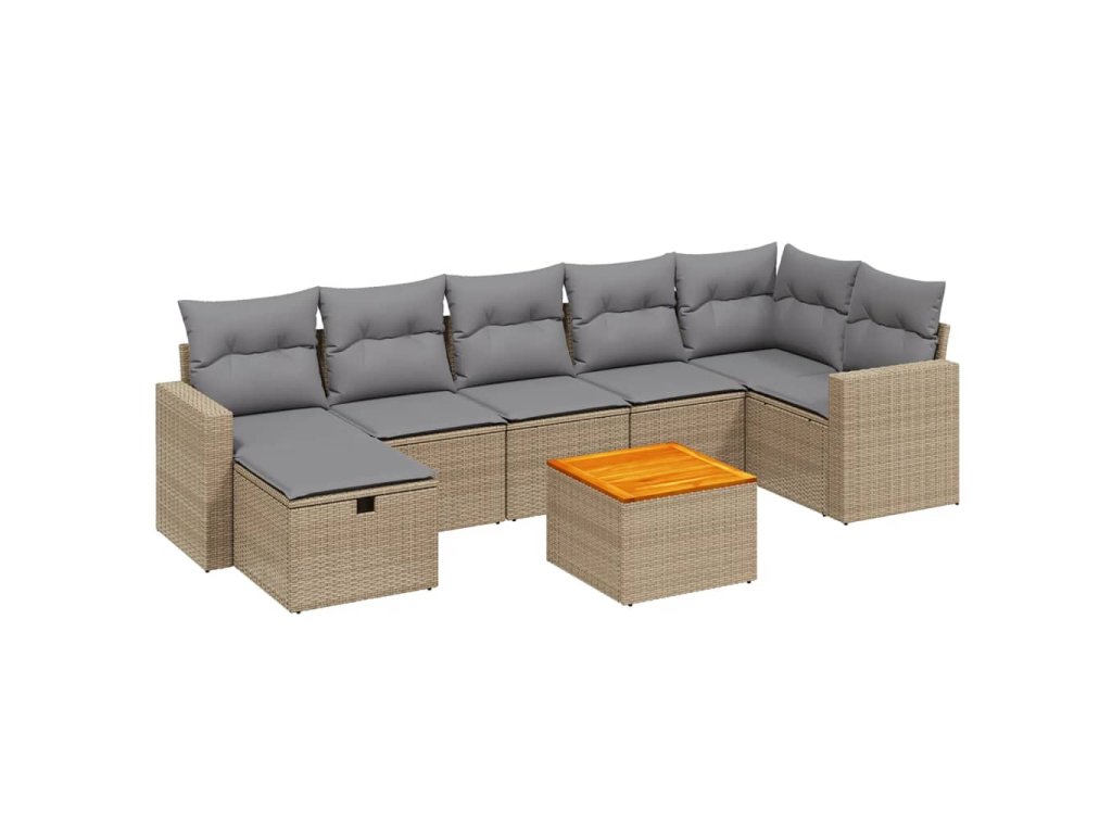 8dílná zahradní sedací souprava a podušky mix béžové polyratan 3264846