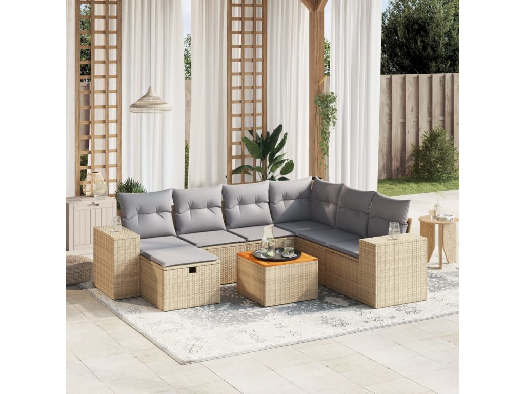 8dílná zahradní sedací souprava a podušky mix béžové polyratan 3265189