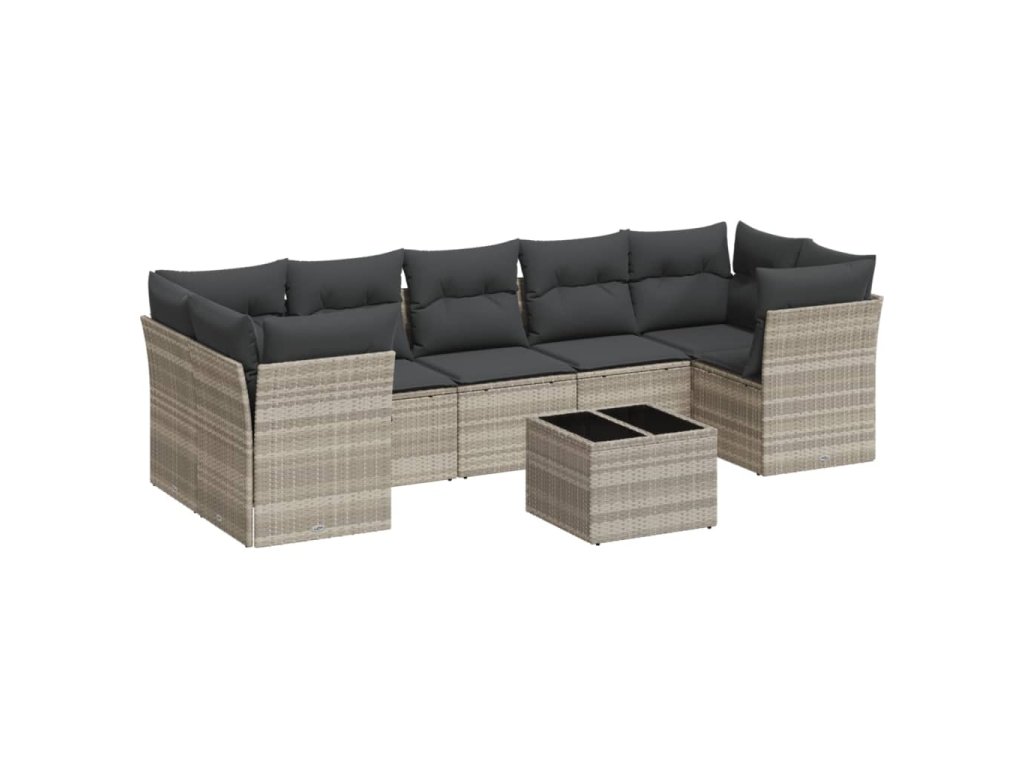 8dílná zahradní sedací souprava a podušky světle šedá polyratan 3217292