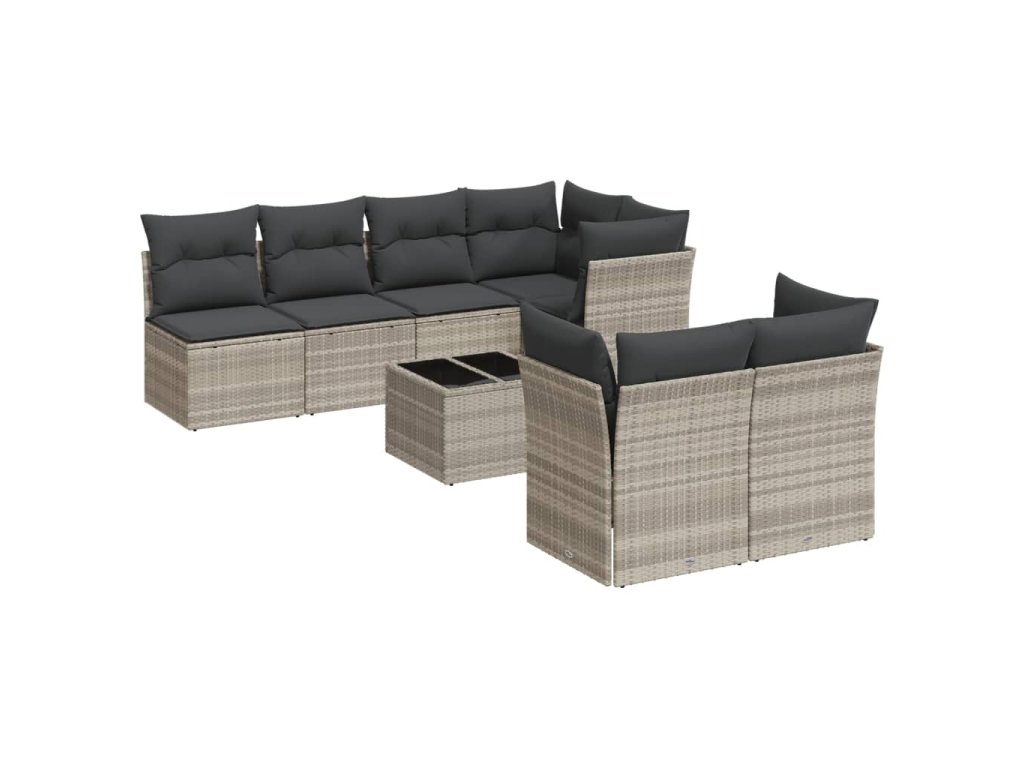 8dílná zahradní sedací souprava a podušky světle šedá polyratan 3217302