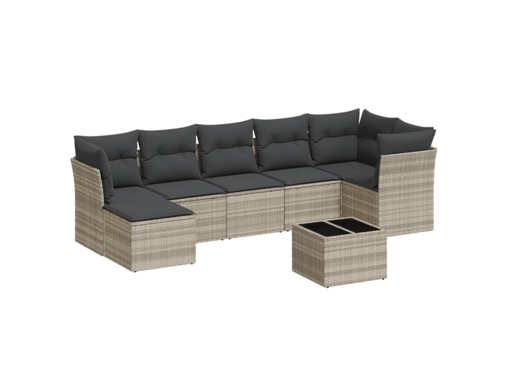 8dílná zahradní sedací souprava a podušky světle šedá polyratan 3217982