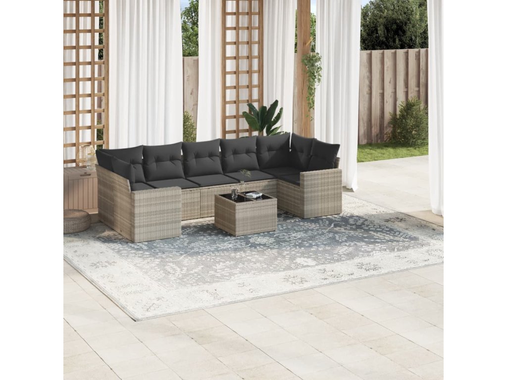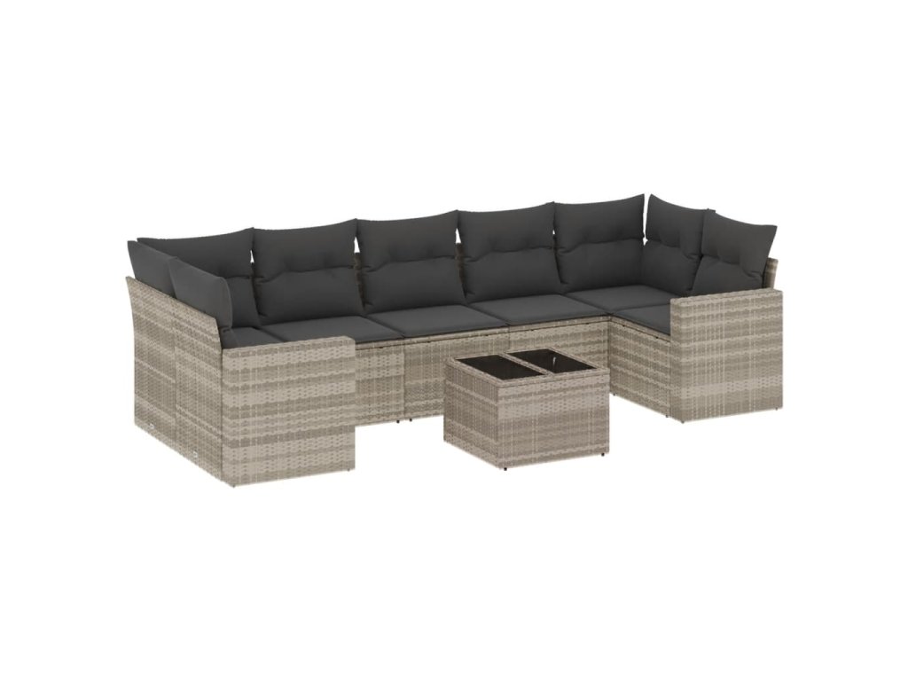 8dílná zahradní sedací souprava a podušky světle šedá polyratan 3218732