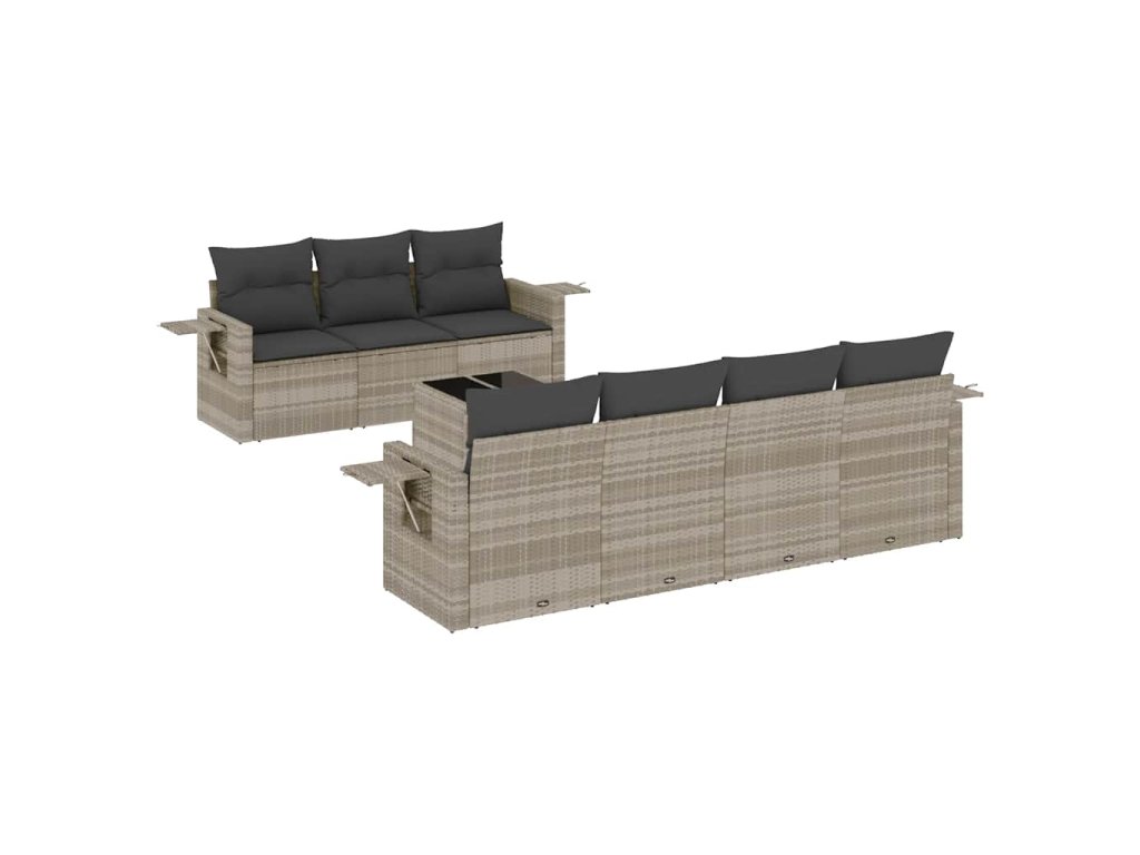 8dílná zahradní sedací souprava a podušky světle šedá polyratan 3219931