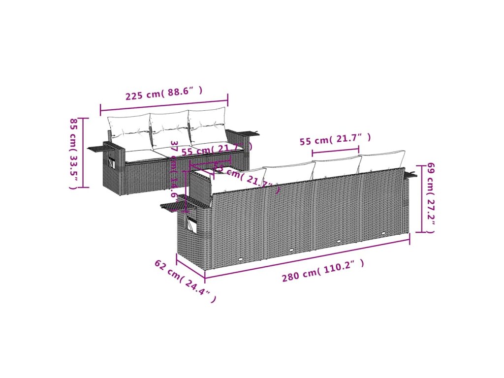 Tato zahradní sedací souprava je dokonalým doplňkem vaší zahrady, terasy nebo dvorku a poskytne vám pohodlné a příjemné místo, kde si můžete povídat s rodinou a přáteli nebo jen tak odpočívat a užívat si pobyt venku.