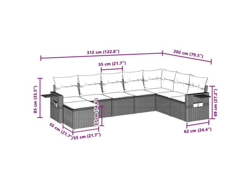 8dílná zahradní sedací souprava a podušky světle šedá polyratan 3220561