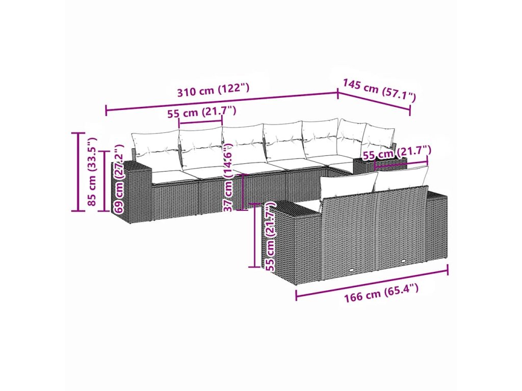 8dílná zahradní sedací souprava a podušky světle šedá polyratan 3222821