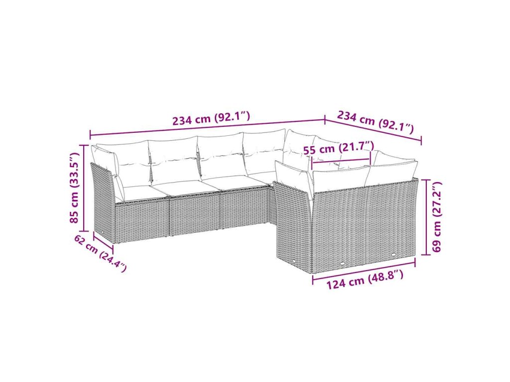 Tato zahradní sedací souprava je dokonalým doplňkem vaší zahrady, terasy nebo dvorku a poskytne vám pohodlné a příjemné místo, kde si můžete povídat s rodinou a přáteli nebo jen tak odpočívat a užívat si pobyt venku.