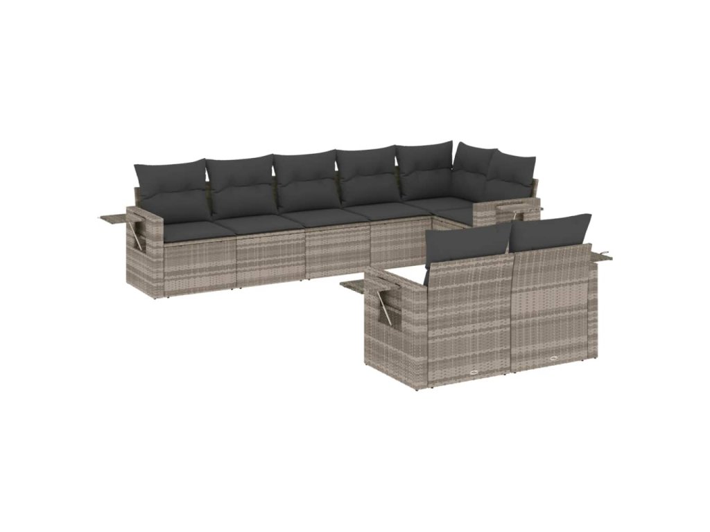 8dílná zahradní sedací souprava a podušky světle šedá polyratan 3252759
