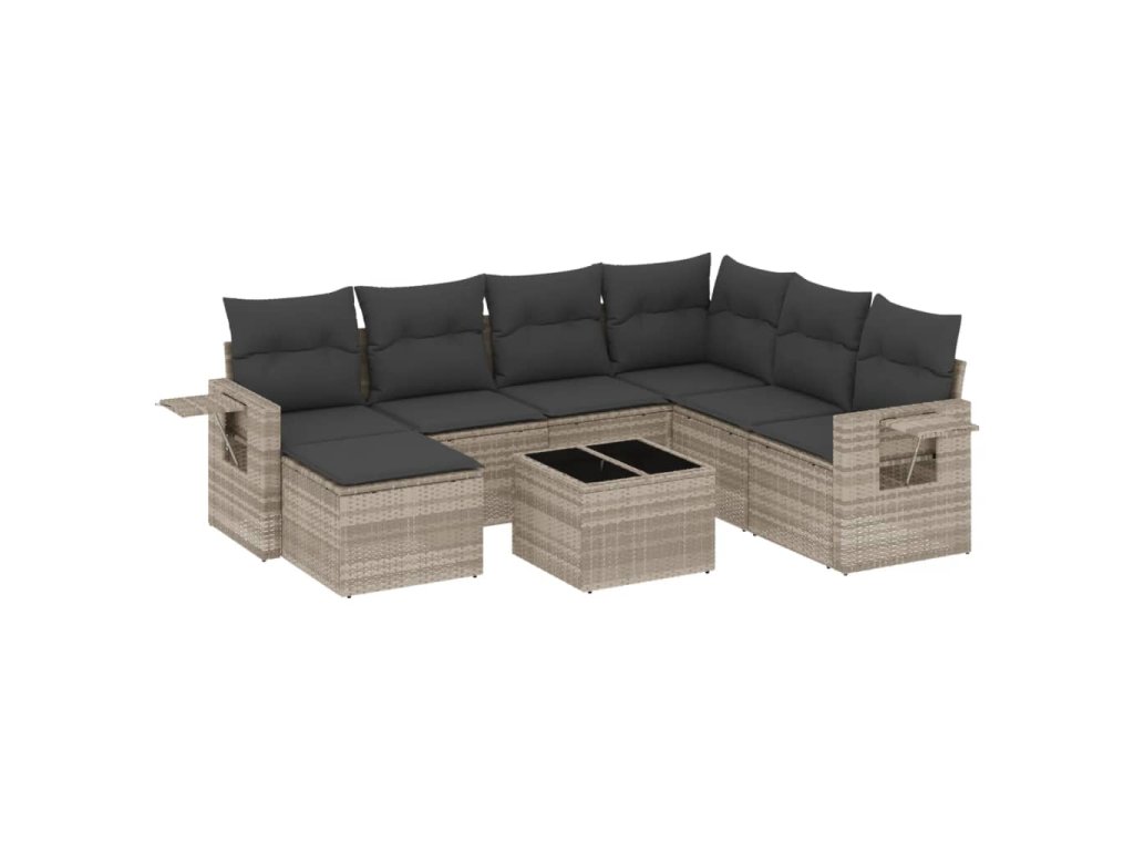 8dílná zahradní sedací souprava a podušky světle šedá polyratan 3252849