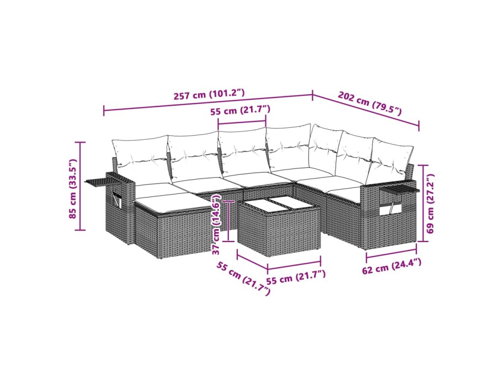 Tato zahradní sedací souprava je dokonalým doplňkem vaší zahrady, terasy nebo dvorku a poskytne vám pohodlné a příjemné místo, kde si můžete povídat s rodinou a přáteli nebo jen tak odpočívat a užívat si pobyt venku.