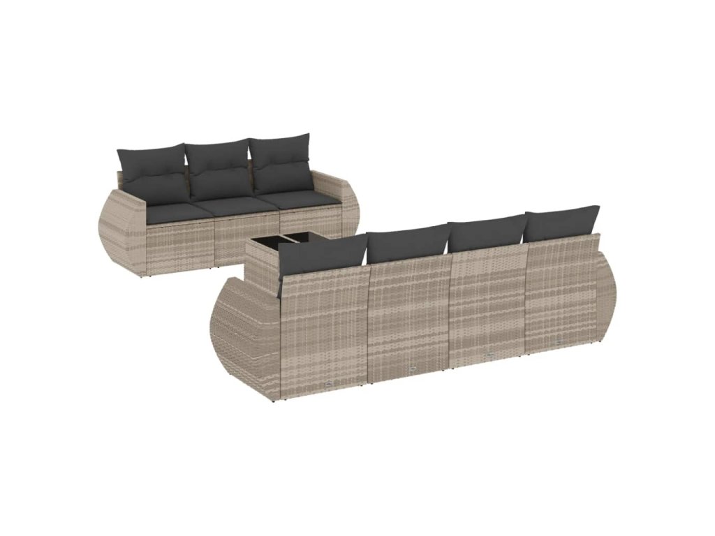 8dílná zahradní sedací souprava a podušky světle šedá polyratan 3253469
