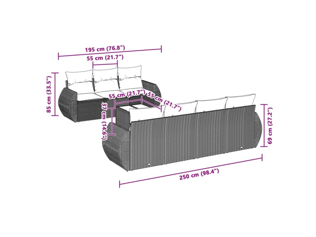 Tato zahradní sedací souprava je dokonalým doplňkem vaší zahrady, terasy nebo dvorku a poskytne vám pohodlné a příjemné místo, kde si můžete povídat s rodinou a přáteli nebo jen tak odpočívat a užívat si pobyt venku.