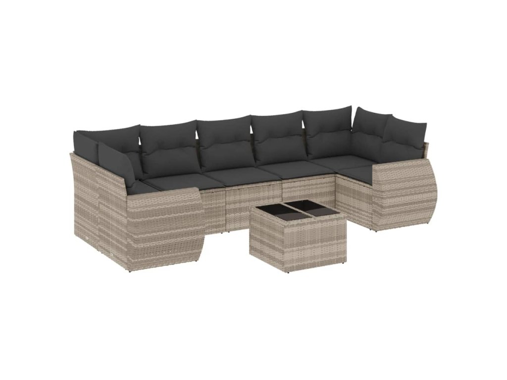 8dílná zahradní sedací souprava a podušky světle šedá polyratan 3253479