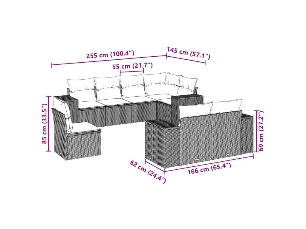 Tato zahradní sedací souprava je dokonalým doplňkem vaší zahrady, terasy nebo dvorku a poskytne vám pohodlné a příjemné místo, kde si můžete povídat s rodinou a přáteli nebo jen tak odpočívat a užívat si pobyt venku.