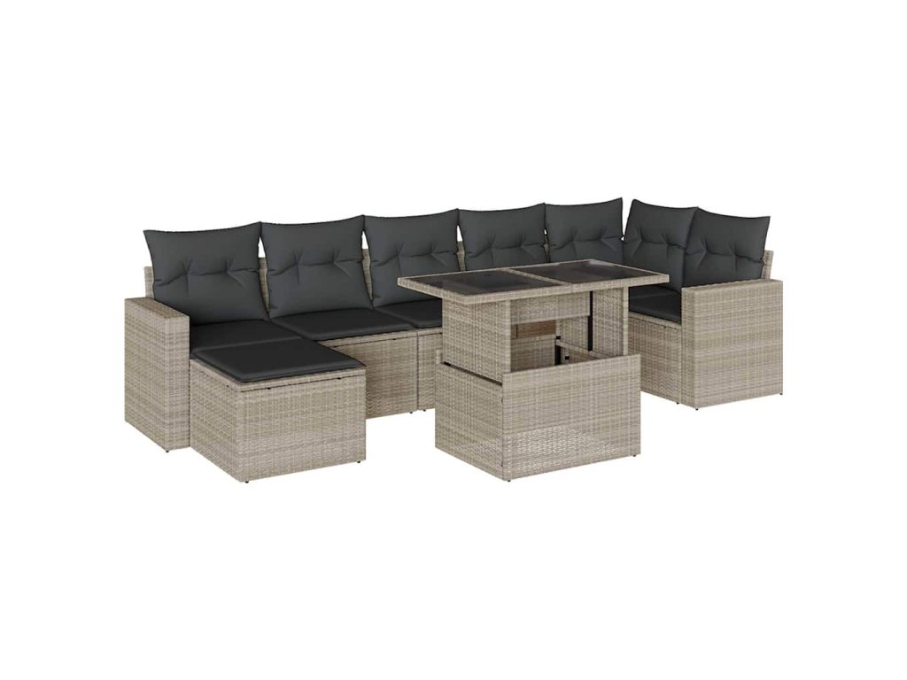 8dílná zahradní sedací souprava a podušky světle šedá polyratan 3267432