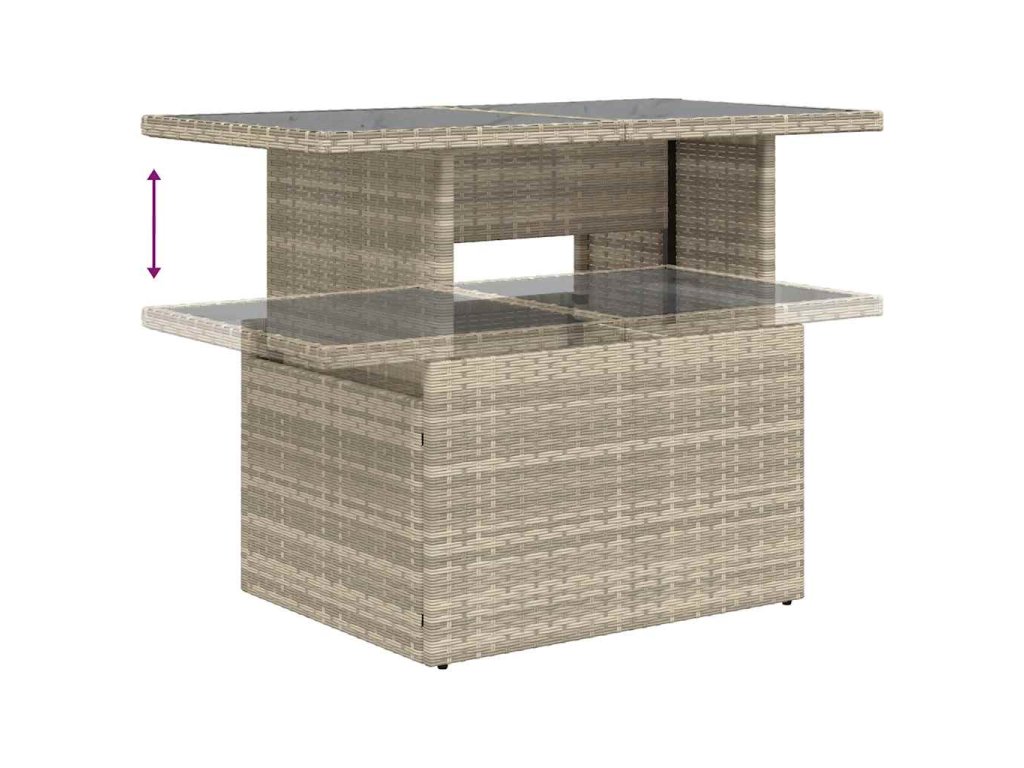 - Nastavitelná deska stolu: Stolní desku lze zvednout tak, aby stůl byl vyšší, takže jej můžete přeměnit z konferenčního stolku na jídelní. Skvěle se hodí pro návštěvy nebo pro stolování venku.