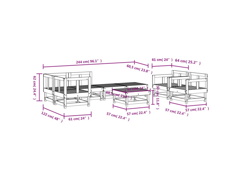 - Rozměry středové pohovky: 61 x 60,5 x 62 cm (Š x H x V)
