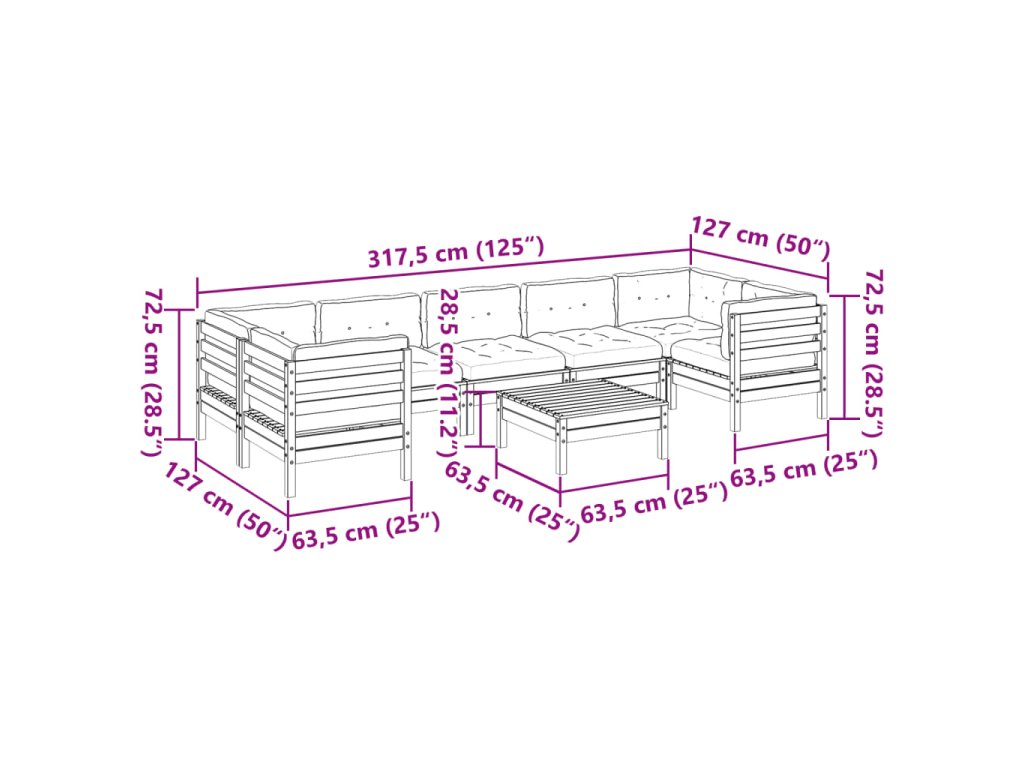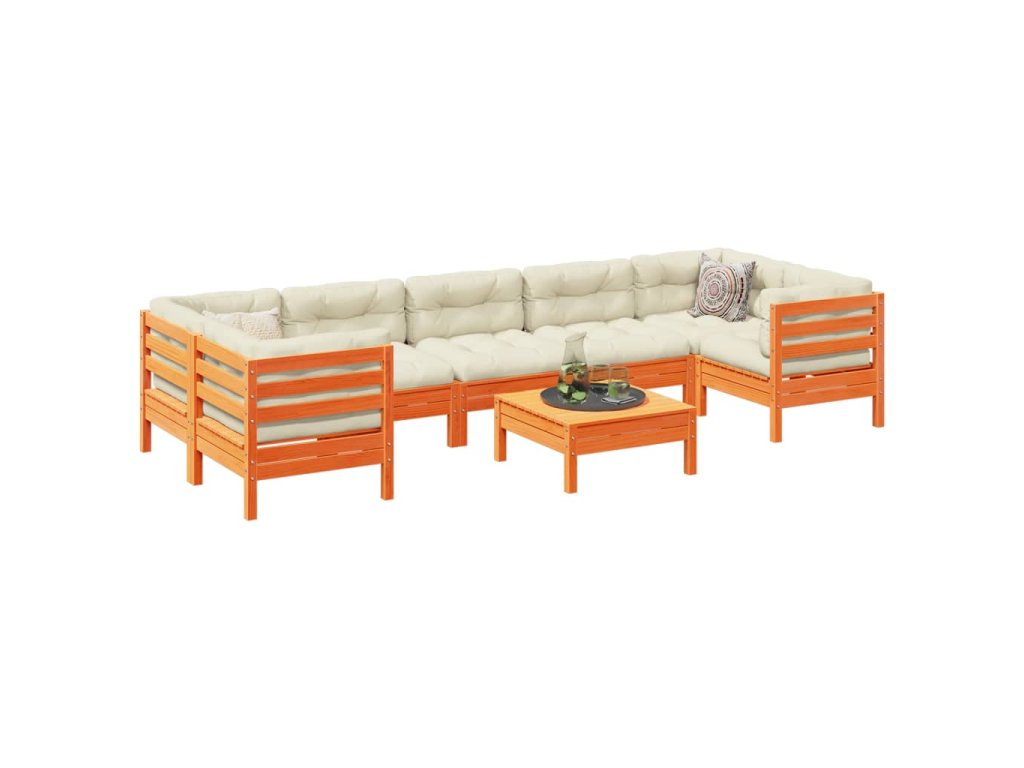 8dílná zahradní sedací souprava podušky voskově hnědá borovice 3299339