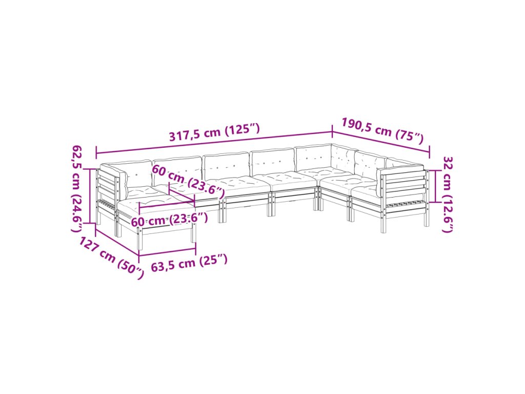 8dílná zahradní sedací souprava podušky voskově hnědá borovice 3299578