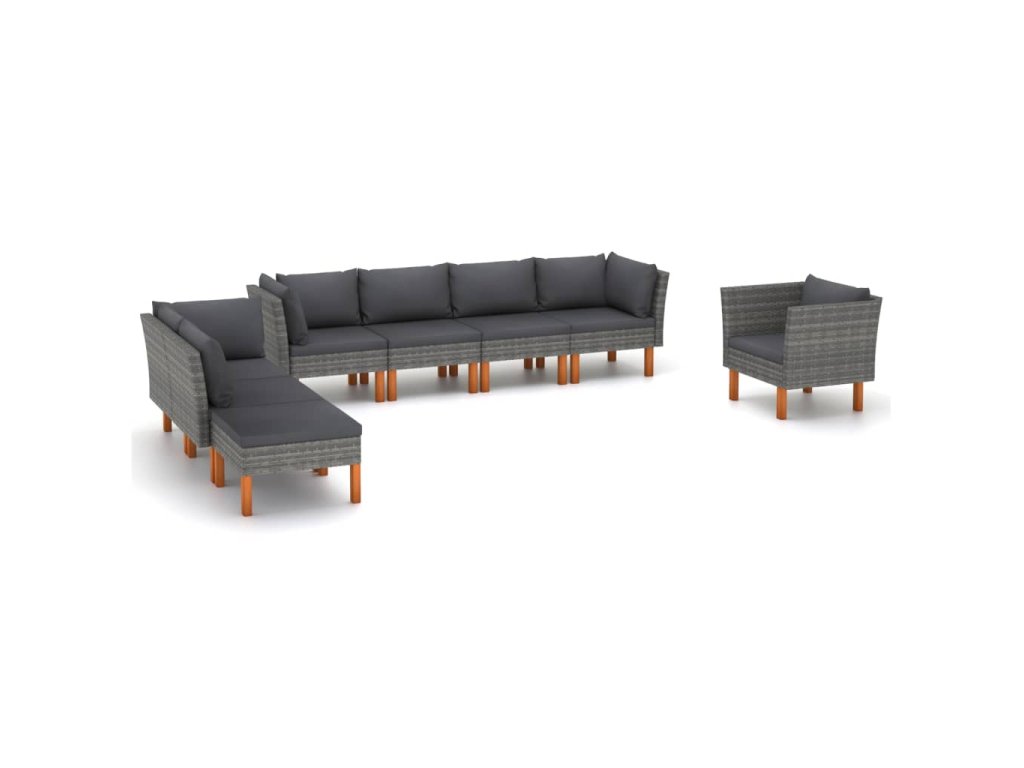 8dílná zahradní sedací souprava polyratan a eukalyptus šedá 3082086