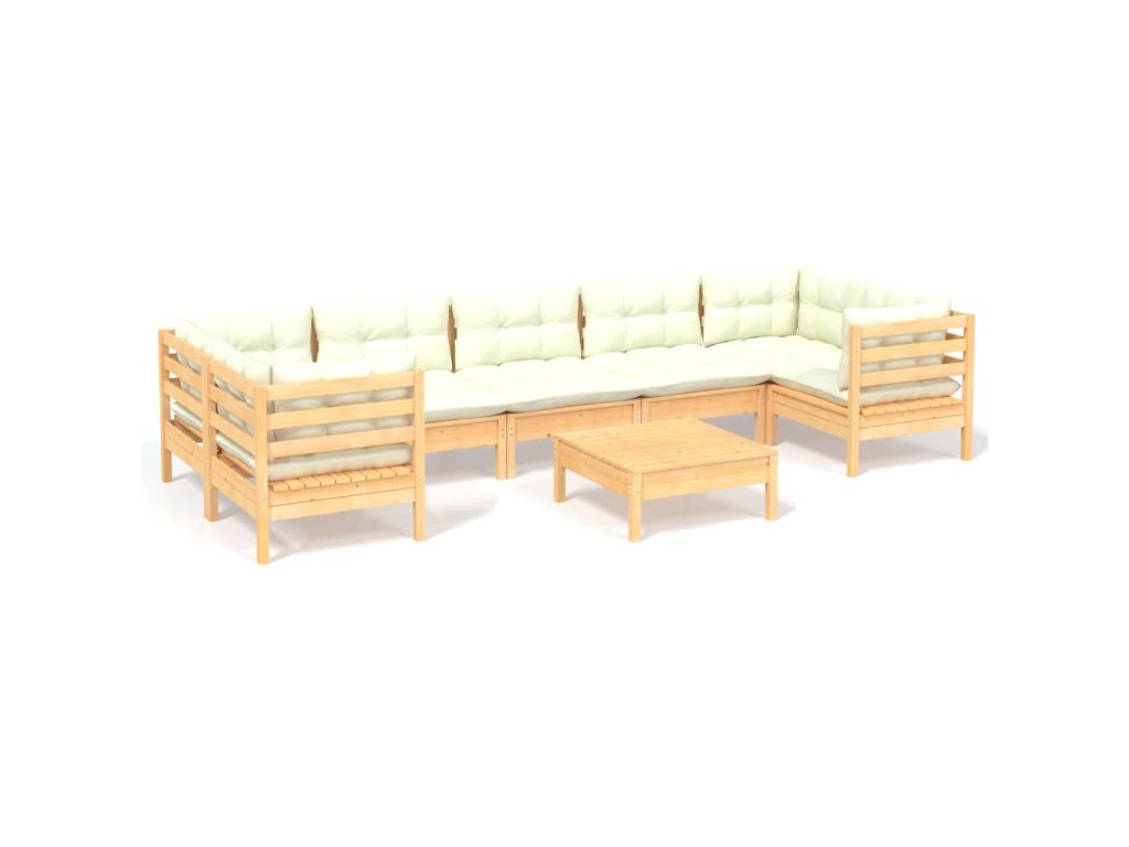 8dílná zahradní sedací souprava s krémovými poduškami borovice 3097313
