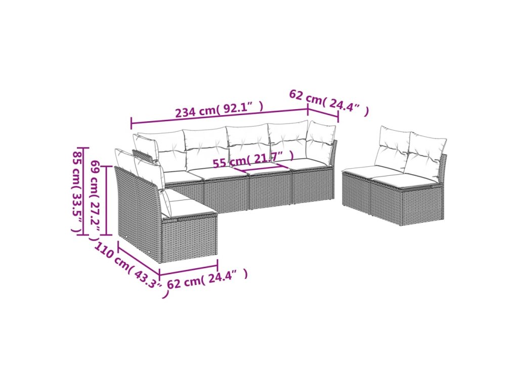 8dílná zahradní sedací souprava s poduškami béžová polyratan 3217448