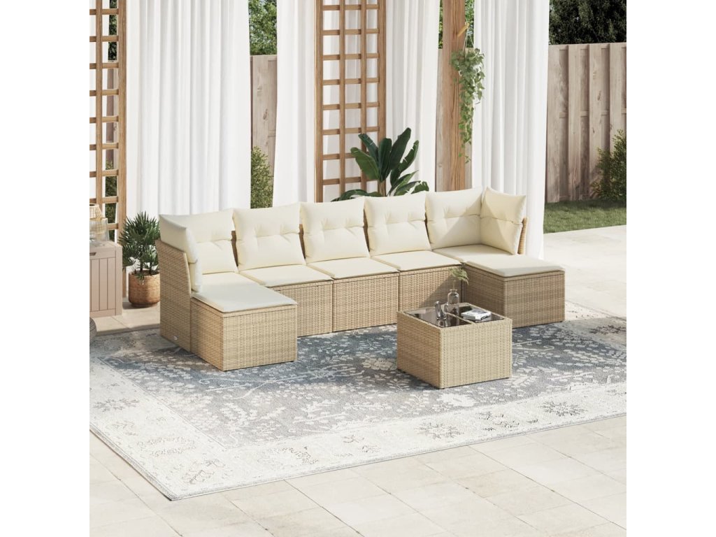 8dílná zahradní sedací souprava s poduškami béžová polyratan 3218038