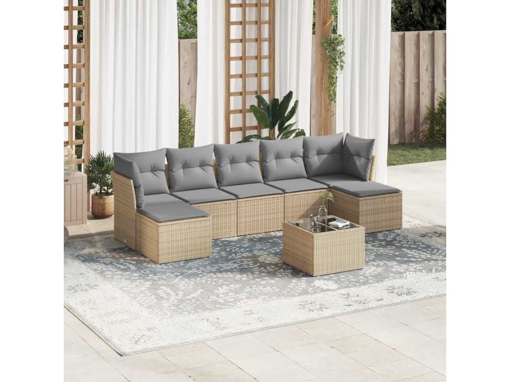 8dílná zahradní sedací souprava s poduškami béžová polyratan 3218039