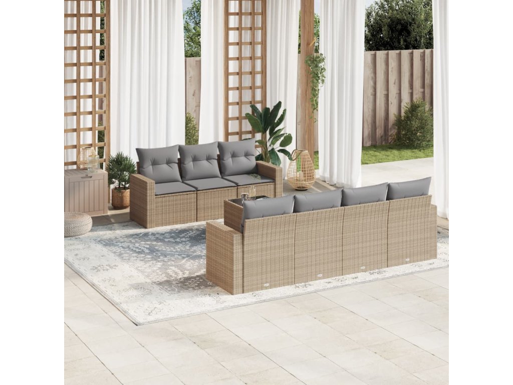 8dílná zahradní sedací souprava s poduškami béžová polyratan 3218719