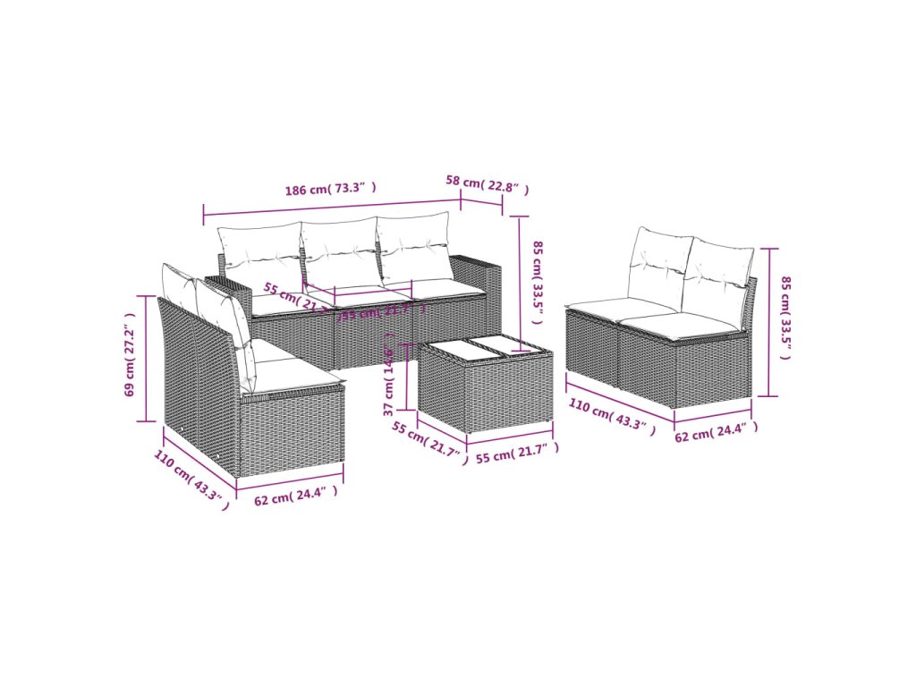 8dílná zahradní sedací souprava s poduškami béžová polyratan 3218829