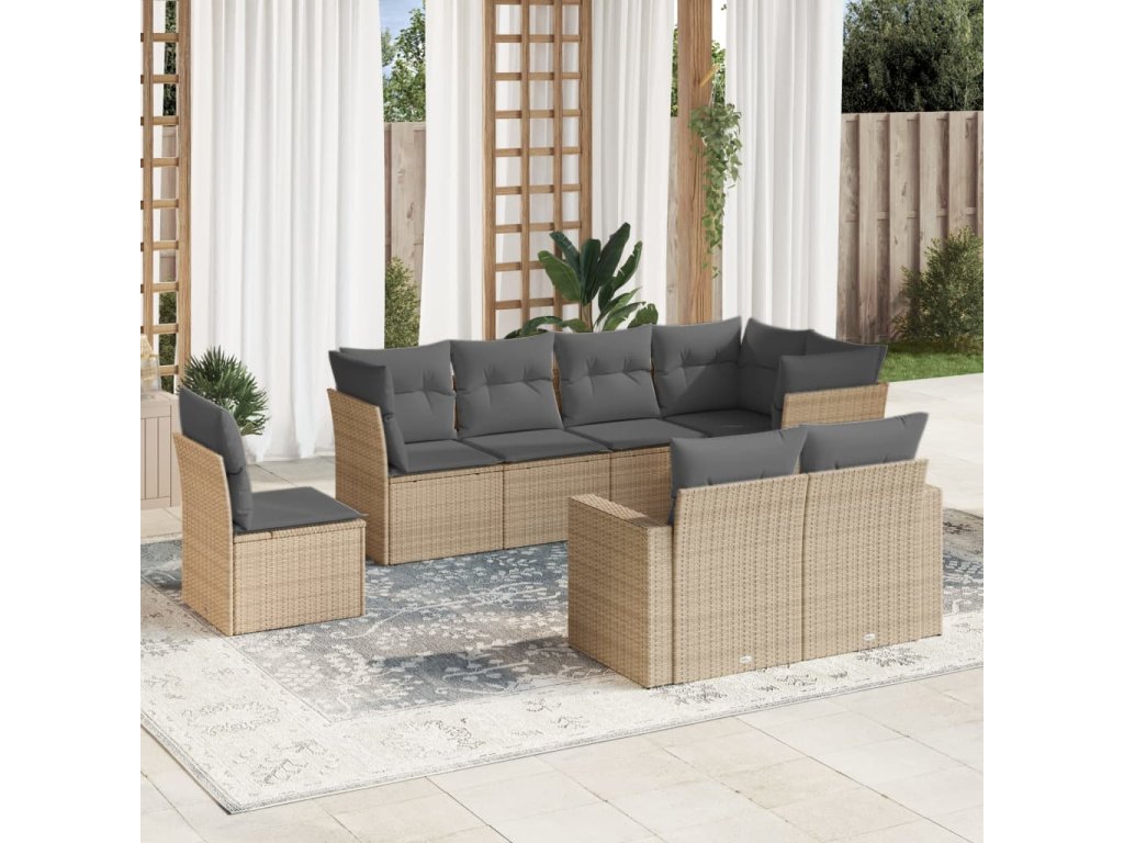 8dílná zahradní sedací souprava s poduškami béžová polyratan 3219229