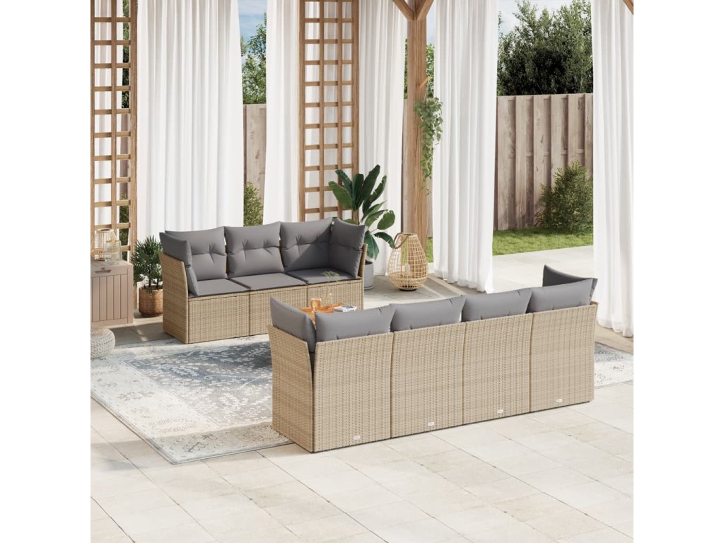8dílná zahradní sedací souprava s poduškami béžová polyratan 3223504