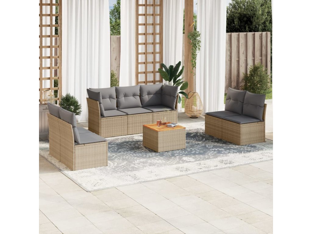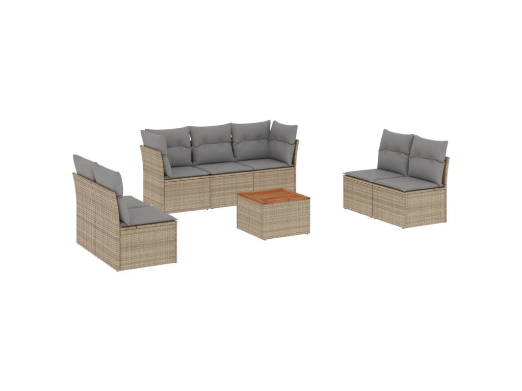 8dílná zahradní sedací souprava s poduškami béžová polyratan 3223567