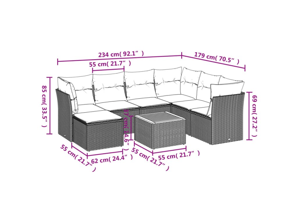 Tato zahradní sedací souprava je dokonalým doplňkem vaší zahrady, terasy nebo dvorku a poskytne vám pohodlné a příjemné místo, kde si můžete povídat s rodinou a přáteli nebo jen tak odpočívat a užívat si pobyt venku.