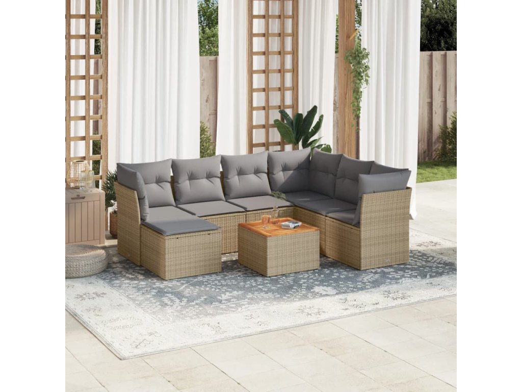 8dílná zahradní sedací souprava s poduškami béžová polyratan 3223763