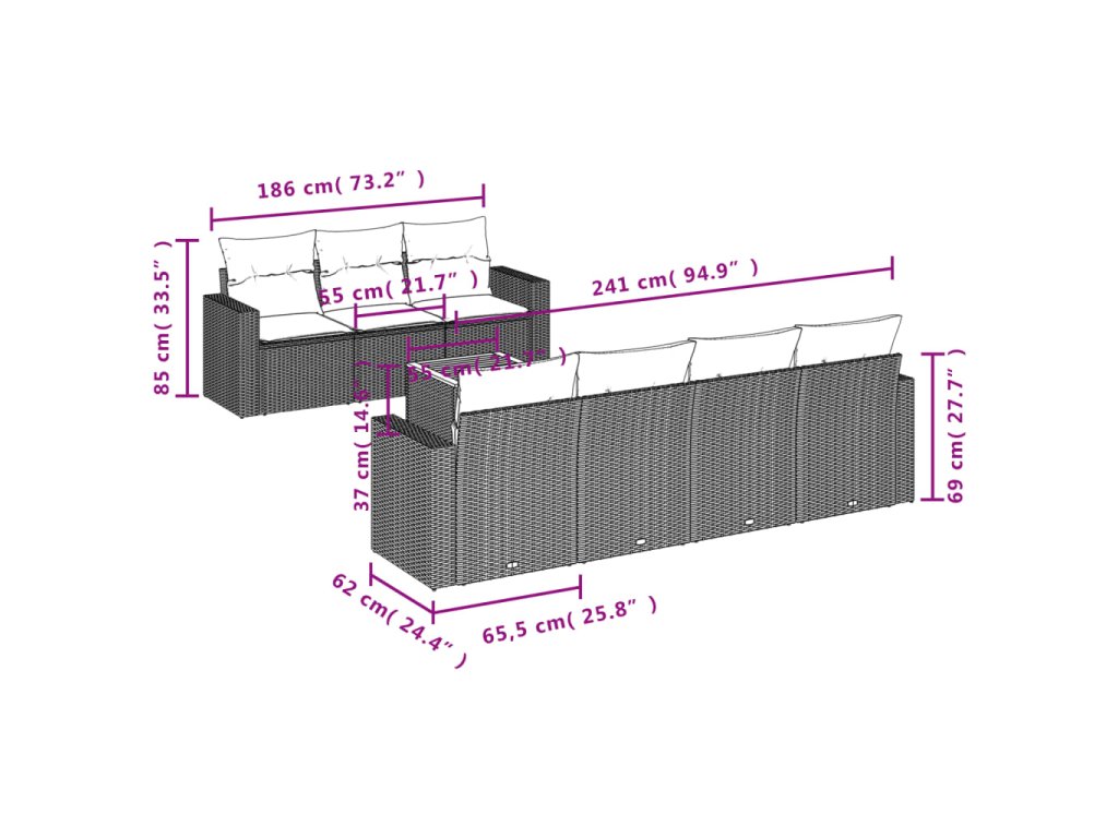 Tato zahradní sedací souprava je dokonalým doplňkem vaší zahrady, terasy nebo dvorku a poskytne vám pohodlné a příjemné místo, kde si můžete povídat s rodinou a přáteli nebo jen tak odpočívat a užívat si pobyt venku.
