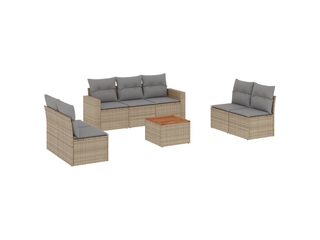 8dílná zahradní sedací souprava s poduškami béžová polyratan 3224078