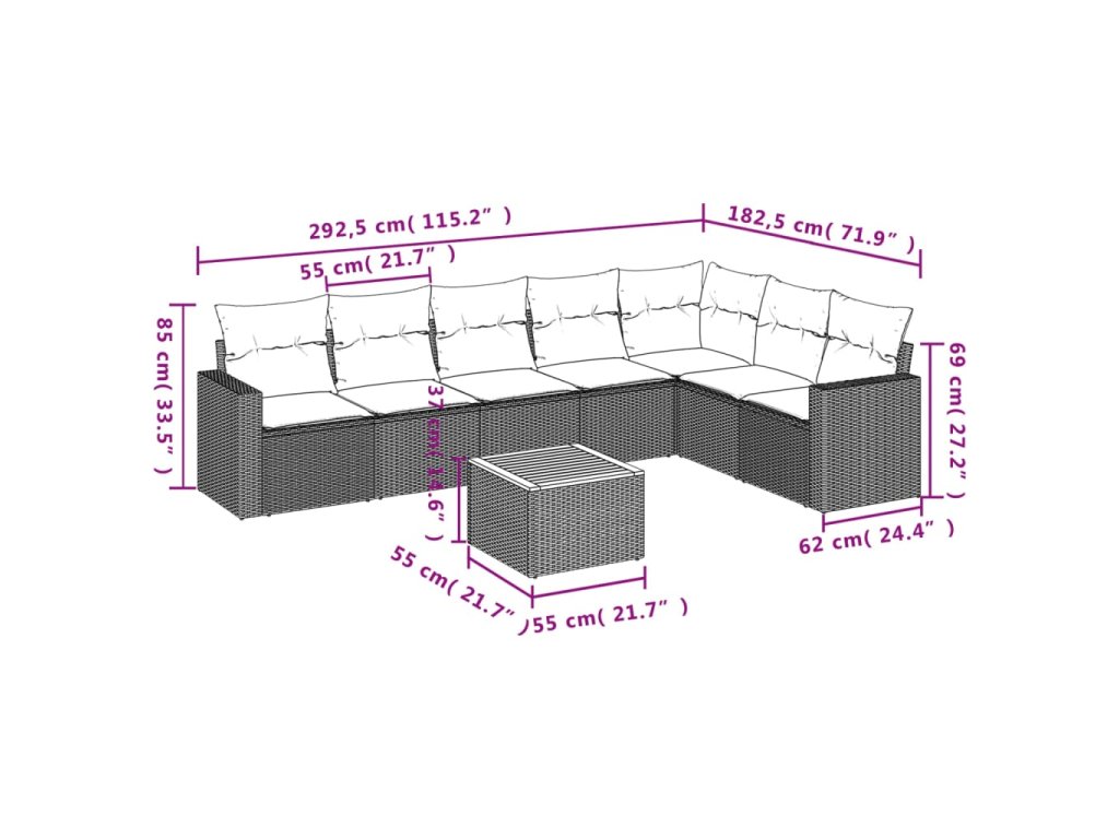 Tato zahradní sedací souprava je dokonalým doplňkem vaší zahrady, terasy nebo dvorku a poskytne vám pohodlné a příjemné místo, kde si můžete povídat s rodinou a přáteli nebo jen tak odpočívat a užívat si pobyt venku.