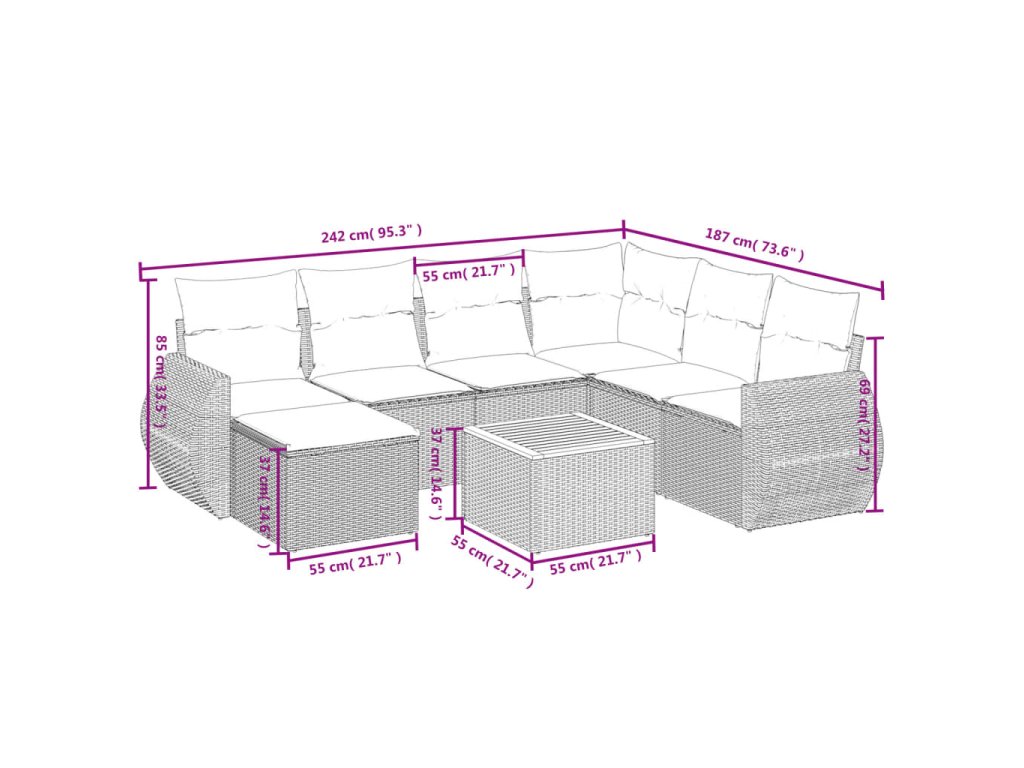 - Modulární design: Tato sada venkovního nábytku se vyznačuje modulární konstrukcí, je tedy zcela flexibilní a lze ji snadno přemisťovat, takže si můžete uspořádat venkovní nábytek dle vašich potřeb.